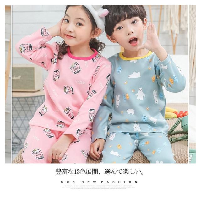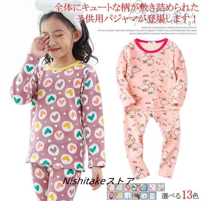 パジャマ キッズ 男の子 女の子 長袖 子供服 裏起毛 セットアップ 上下セット ルームウェア 寝巻き 冬物 花柄 可愛い 防寒 暖かい