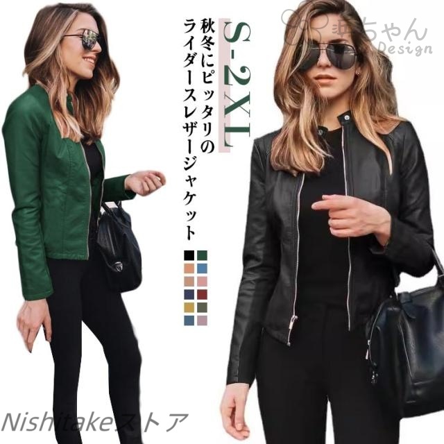 レザー ショートコート レディース ノーカラージャケット ライダースジャケット 革 アウター レディースコート 春コート 秋コート 革ジャン 皮ジャン コーデ 秋 アウター スリム 着?せ 無地 カッコイイ 長袖 大人女性 ギフト 送料無料