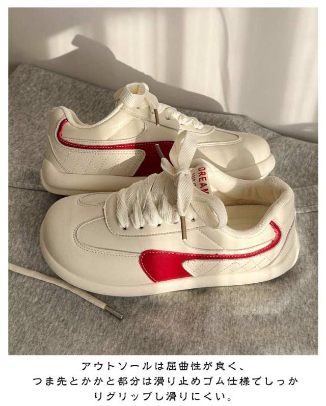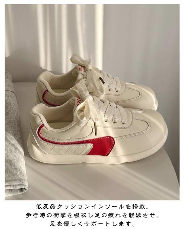 | クラシックなデザインと快適な履き心地を兼ね備えたスニーカー 低反発クッションインソールを搭載。歩行時の衝撃を吸収し足の疲れを軽減させ、足を優しくサポートします。 アウトソールは屈曲性が良く、つま先とかかと部分は滑り止めゴム仕様でしっかりグリップし滑りにくい。 普段使いからスポーツ用にも重宝しそうなアイテムですね♪ 様々なファッションスタイルに合わせやすい3カラーからお選びいただけます | |
