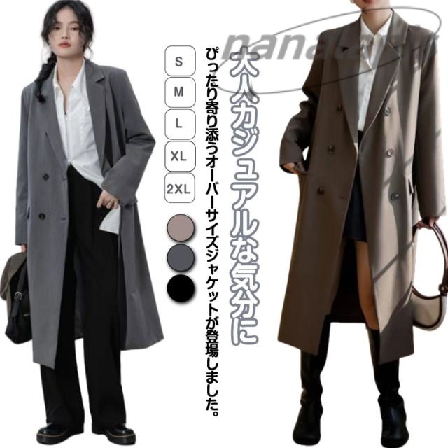 トレンチコート テーラードジャケット ポケット付き ロング丈 ジャケット 春 長袖 秋 アウター スプリングコート スーツコート フォーマル コート ジャケット 体型カバー 無地 通勤 ゆったり