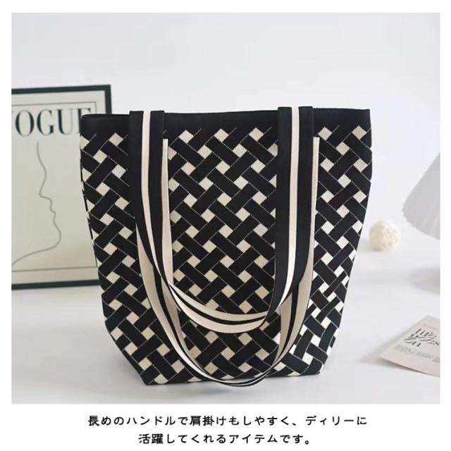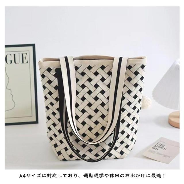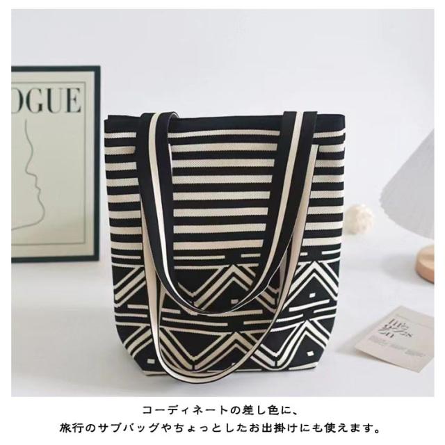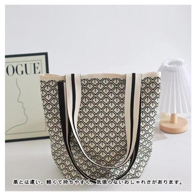 | 人気のニット素材のトートバッグ、持ってるだけでお洒落度UP! 革とは違い、軽くて持ちやすく、気張らないおしゃれさがあります。 しっかりとした幅広のマチで自立し、見た目以上の収納力です。 A4サイズに対応しており、通勤通学や休日のお出かけに最適! 長めのハンドルで肩掛けもしやすく、ディリーに活躍してくれるアイテムです。 コーディネートの差し色に、旅行のサブバッグやちょっとしたお出掛けにも使えます。 | |