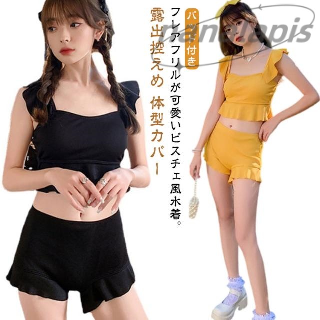 水着 ビキニ タンキニ 可愛い セパレート レディース 体型カバー 露出控えめ ラッシュガード ハーフパンツ フリル タンキニ 10代20代 30代 40代 ママ水着 ビスチェ風 上下セット パッド付き