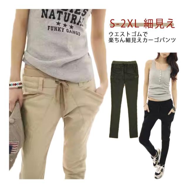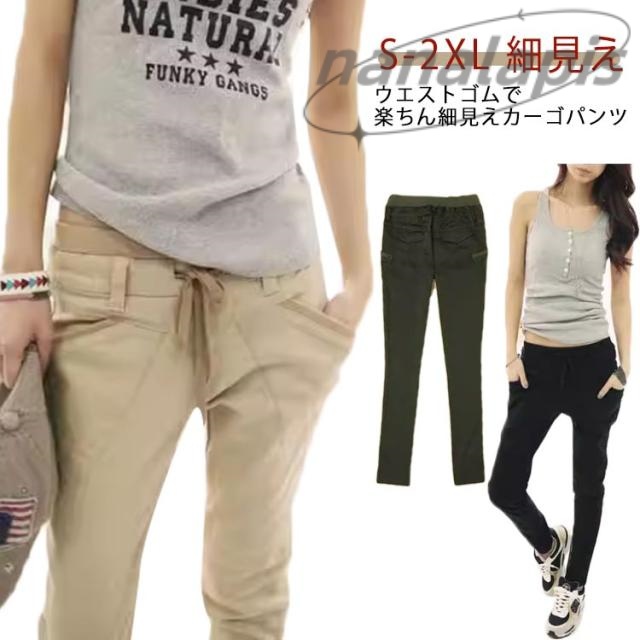 カーゴパンツ 【メール便送料無料】 ウエストゴム ストレート パンツ スリム 大きいサイズ 細見え 春 スキニー 夏 かわいい おしゃれ カーキ ブラック 黒 ベージュ レディース チノパン シンプル チノパン ツイル サルエル コットン
