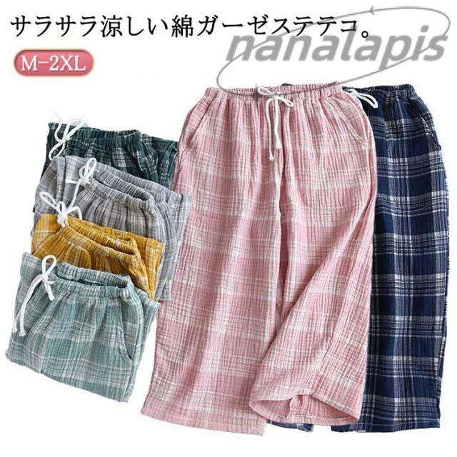 ガーゼ 部屋着 コットン 7分丈 ステテコ ルームウェア 春夏 ダブルガーゼ レディース ショートパンツ ステテコ おしゃれ ハーフパンツ 可愛い 薄手 綿 ルームパンツ 短パン チェック 柄 ズボン 涼しい 女性 プレゼント ギフト