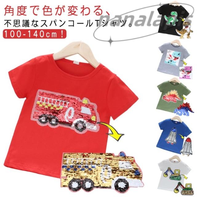 ブラック スパンコール 男の子 子ども服 キッズ 半袖 トップス プチプラ 半袖 140cm 無地 変色 夏 100cm 110cm 120cm 130cm 春 こども服 通学 プレゼント グレー 通園 レッド グリーン 恐竜 アンキロサウルス 消防車 ロケット