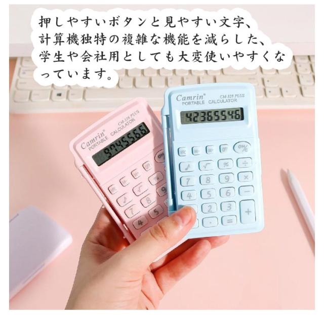 | 手帳タイプ 小型軽量で携帯に便利 最大8桁まで表示可能です。 押しやすいボタンと見やすい文字、計算機独特の複雑な機能を減らした、学生や会社用としても大変使いやすくなっています。 | |