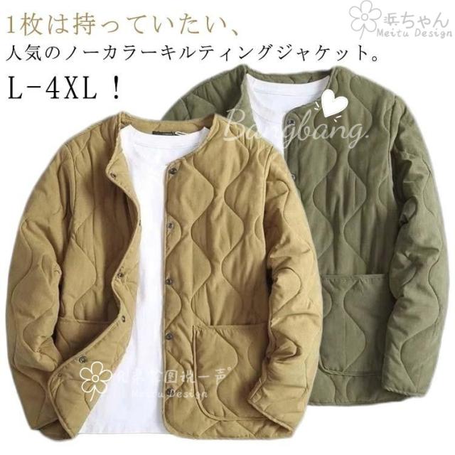 メンズ ゆったり キルティングジャケット ジャケット アウター ノーカラー 羽織り 長袖 中綿 キルティングコート ライナージャケット ミリタリー 防