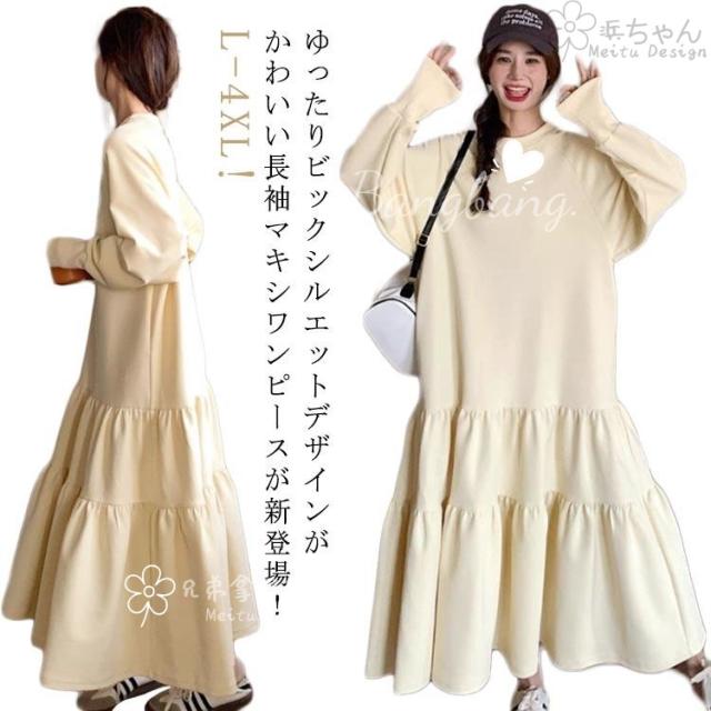 長袖 ワンピース ゆったり パーカーワンピース 春 秋 トレーナーワンピース ゆったり ロングワンピース 体型カバー プルオーバー フレア マキシワン