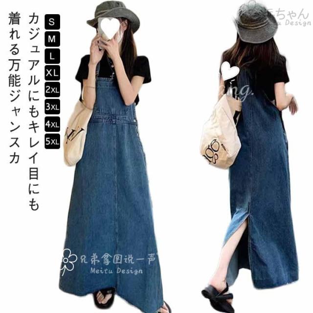 ゆったり ジャンパースカート レディース スカート デニムサロペットスカート ジャンスカ フレア サロペット ワンピース ロング デニム バックスリッ
