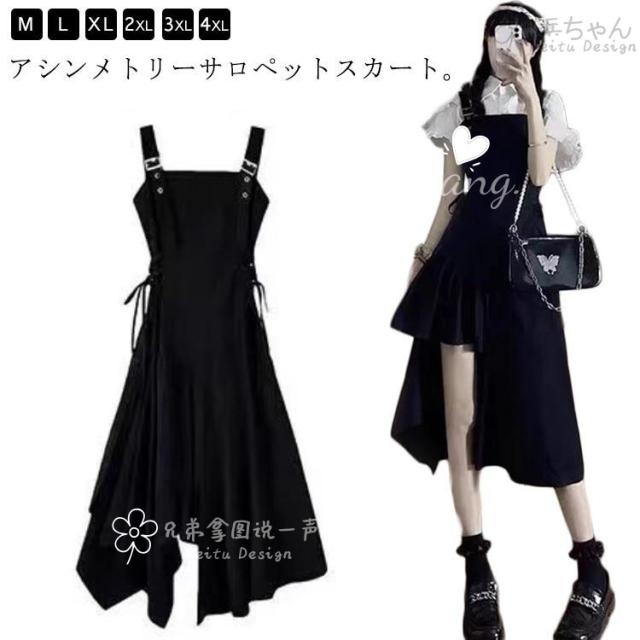 レディース フレア オールインワン サロペットスカート ジャンスカ サロペット ワンピース ロングワンピース 春夏秋 アシンメトリー Aライン ハイウ