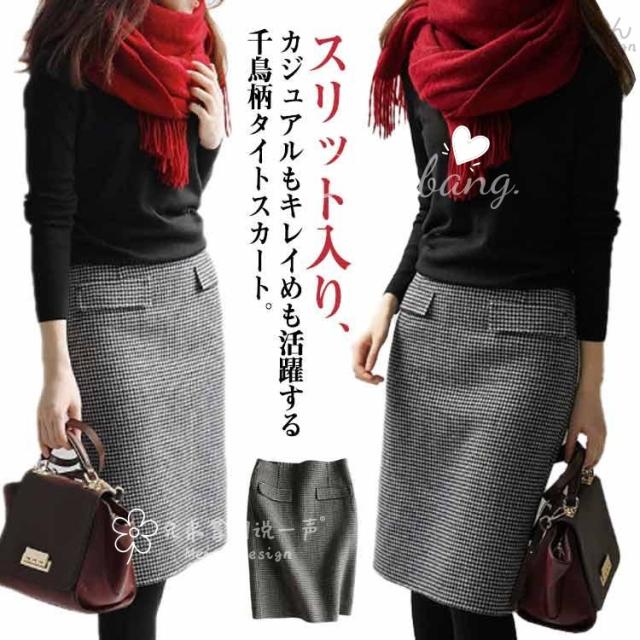 千鳥柄 ひざ丈スカート タイトスカート オフィス 30代 ボトムス タイトスカート レディース エレガント上質 スリット オフィス 入学式 お受験 卒