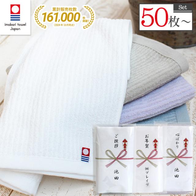 のし包装無料 今治タオル フェイスタオル 50枚セット あいさつ ギフト粗品 のし まとめ買い 薄手こだわり 綿100% 日本製 安心 キッチン ギフト 御礼 引っ越し 挨拶 お年賀 敬老会 タオル anzen マンション 近隣挨拶 手土産