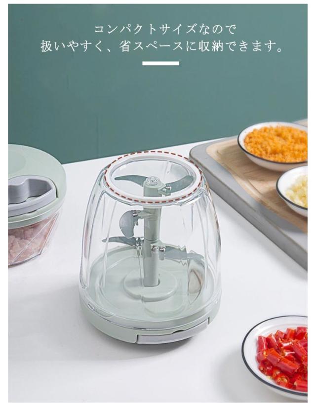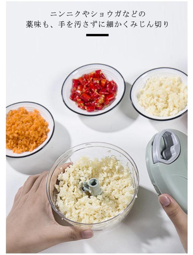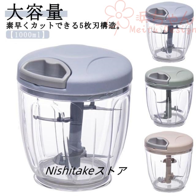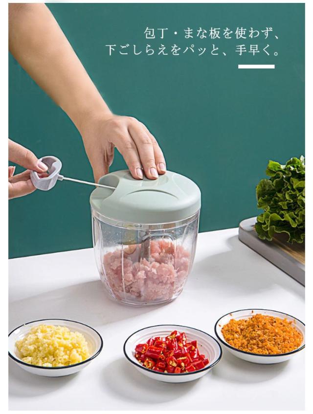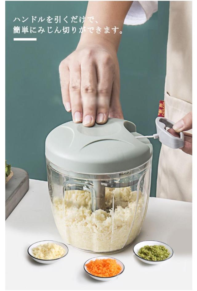 5枚刃 みじん切り器 チョッパー 手動 引っ張る 1000ml 大容量 フードプロセッサー フードチョッパー プロセッサー 離乳食 みじん切り 玉ねぎ にんにく キャベツ スライサー フードカッター 引くだけ 切る 刻む 混ぜる 下ごしらえ 丸洗い