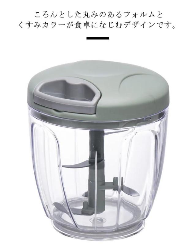| 素早くカットできる5枚刃構造。ハンドルを引くだけで、簡単にみじん切りができます。【1000ml】 包丁・まな板を使わず、下ごしらえをパッと、手早く。 ニンニクやショウガなどの薬味も、手を汚さずに細かくみじん切り コンパクトサイズなので扱いやすく、省スペースに収納できます。 ころんとした丸みのあるフォルムとくすみカラーが食卓になじむデザインです。 | |
