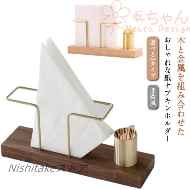 | 木と金属を組み合わせたおしゃれな紙ナプキンホルダー シンプルなデザインなのでご家庭やレストラン、カフェ、喫茶店など場所を問わず使えます。 様々なサイズの紙ナプキンや、ティッシュペーパーにも適合し、折りたたみ方によっていろいろな演出をお楽しみいただけます。 選べる3タイプ、ニーズに合わせて選びいただけるのがうれしい♪ | |