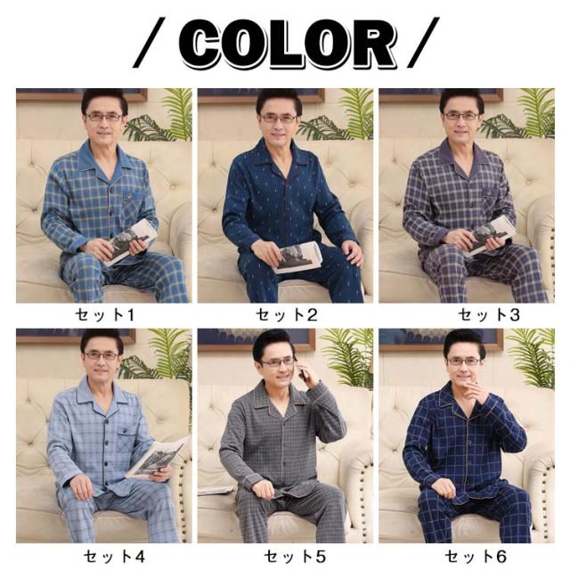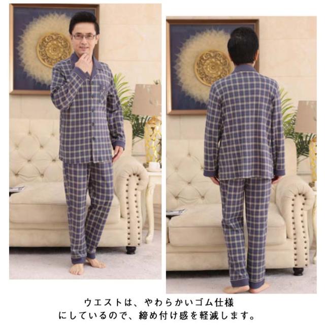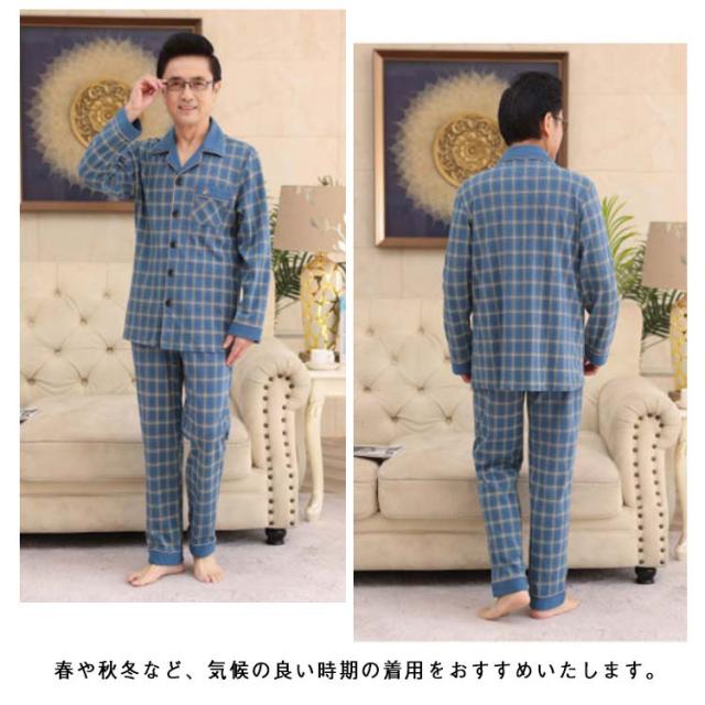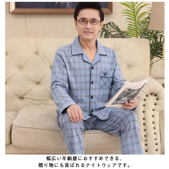 上下セット 前開き シニア 60代 プレゼント 冬 長袖 男性 ルームウェア 高齢者 パジャマ 襟付き セットアップ 80代 90代 敬老の日 秋 長袖 メンズ ナイトウェア 部屋着 寝間着 チェック柄 長袖パジャマ 上下 シニアファッション 秋物 秋服 100%綿