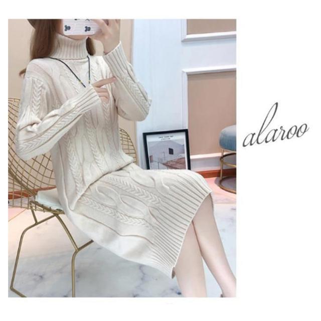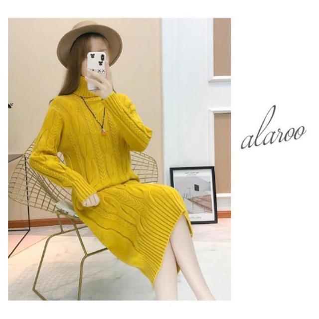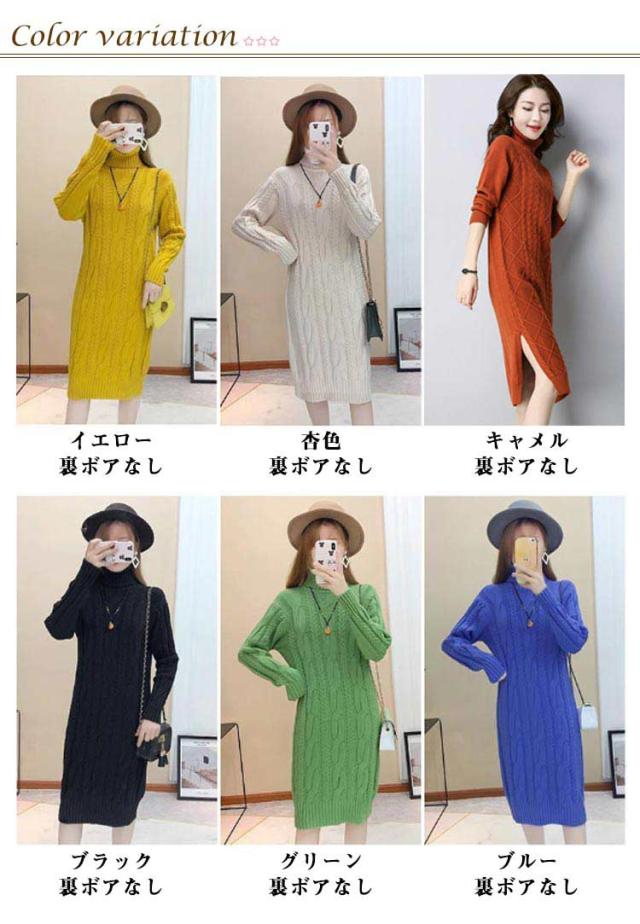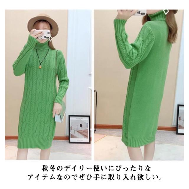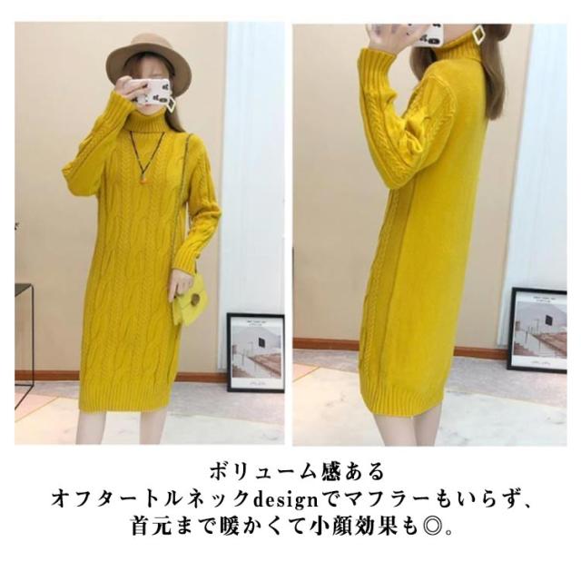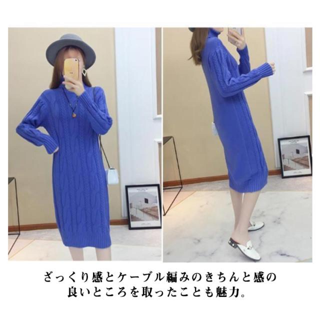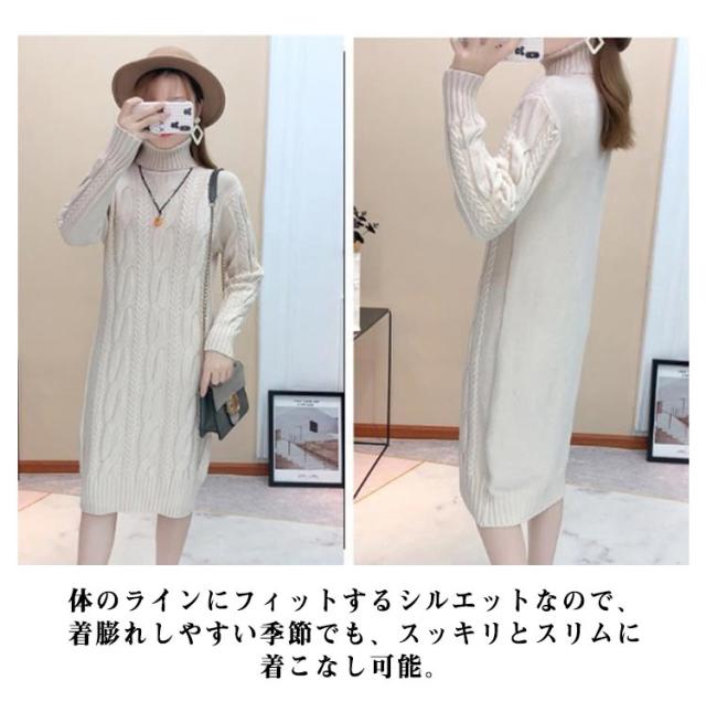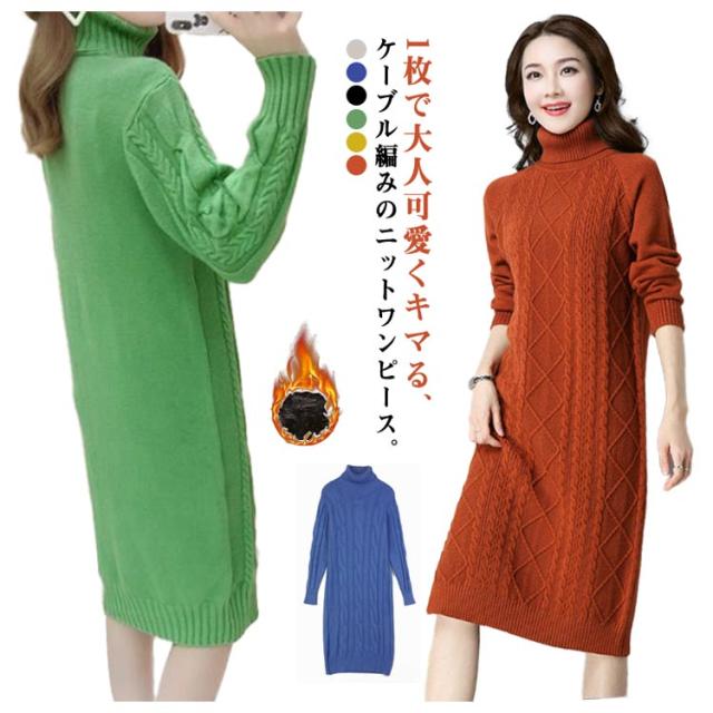 ワンピース タートルネック タートルネック ケーブル編み ニットワンピ ニットワンピース ロング 厚手 防寒 長袖 大きいサイズ ニットセーター