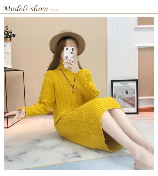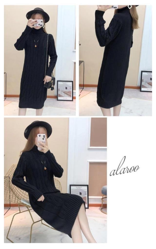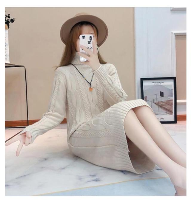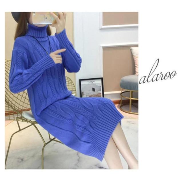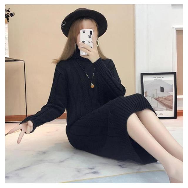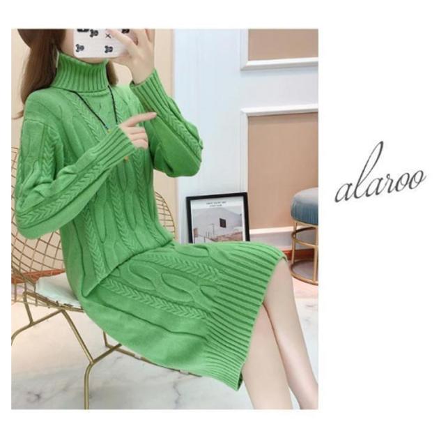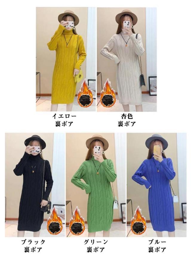 ワンピース タートルネック タートルネック ケーブル編み ニットワンピ ニットワンピース ロング 厚手 防寒 長袖 大きいサイズ ニットセーター