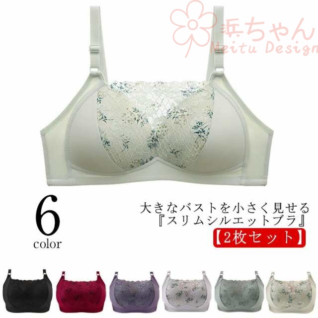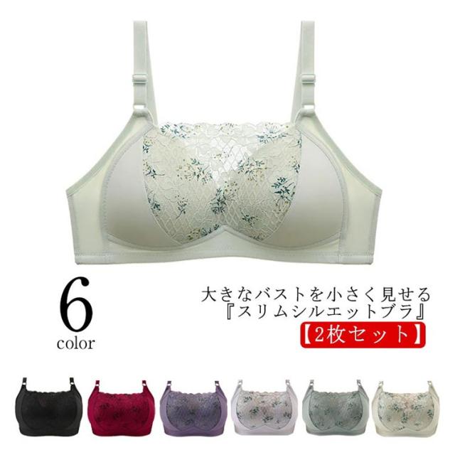 胸 小さく 見せる ブラ ブラジャー ノンワイヤー 2枚セット レース 胸を小さく見せるブラ フルカップ 薄手カップ 脇高 背中 脇肉 スッキリ 補正下着 胸元カバー 着?せ 谷間を隠す 谷間カバー 30代 40代 50代 おしゃれ