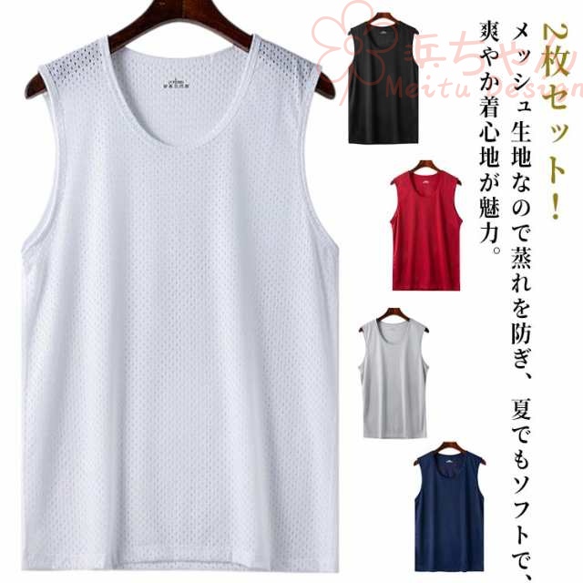 tシャツ インナーシャツ タンクトップ 2枚セット 袖なし スポーツ 夏服 ノースリーブ インナー メッシュ アンダーウェア 薄手 シンプル メンズ 肌着 レイヤード 重ね着 スポーツ トレーニング ランニング ゴルフ 野球