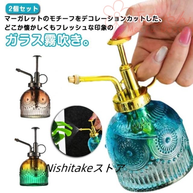 室内植物 2個セット 霧吹きスプレー 2個セット ガーデニング 園芸 アンティーク調 葉水 散水 ミストスプレー 霧吹き スプレー グラデーションカラー マーガレット おしゃれ レトロ 水やり かわいい インテリア 雑貨 花 植物 ガラス 鉢 じょうろ 小型