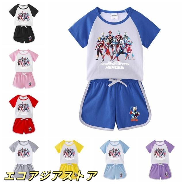 夏大人気 バイカラーウルトラマン Ultraman 子供服 セットアップ キッズ 上下セット 2点セット 半袖Tシャツ トップス ハーフパンツ 通学着 通園着