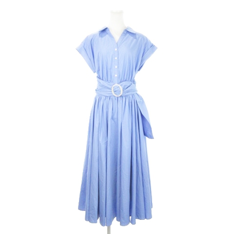 【中古】マイストラーダ Mystrada ボリュームギャザーシャツワンピース ロング 半袖 スキッパー ベルト 38 M 水色