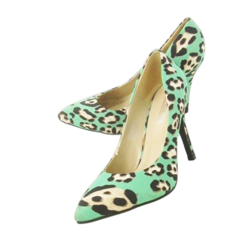 【中古】フィビガー ハイヒールパンプス アーモンドトゥ ピンヒール サテン アニマル レオパード ヒョウ柄 37 緑