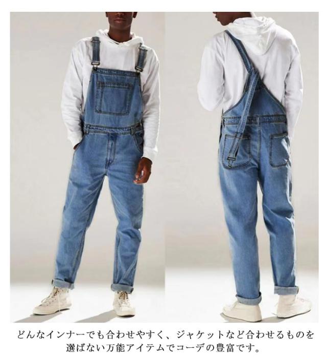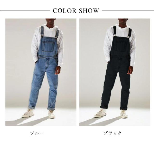 オーバーオール メンズ デニム サロペット ジーンズ デニムパンツ ジーパン ゆったり 大きいサイズ ブルー ブラック 青 つなぎ オールインワン ロング ワイドパンツ おしゃれ ストリート アメカジ