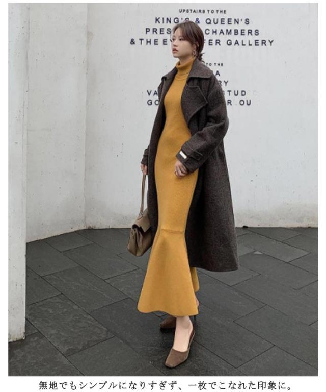 | なデザインのマーメイドニットワンピース。 もっちり感がやみつきになるリブニット素材を使用。 リラックス感がありながら、裾のフレアで女性らしさも演出できます。 無地でもシンプルになりすぎず、一枚でこなれた印象に。 オンオフ共にお使いいただけるので、重宝すること間違いなし。 | |