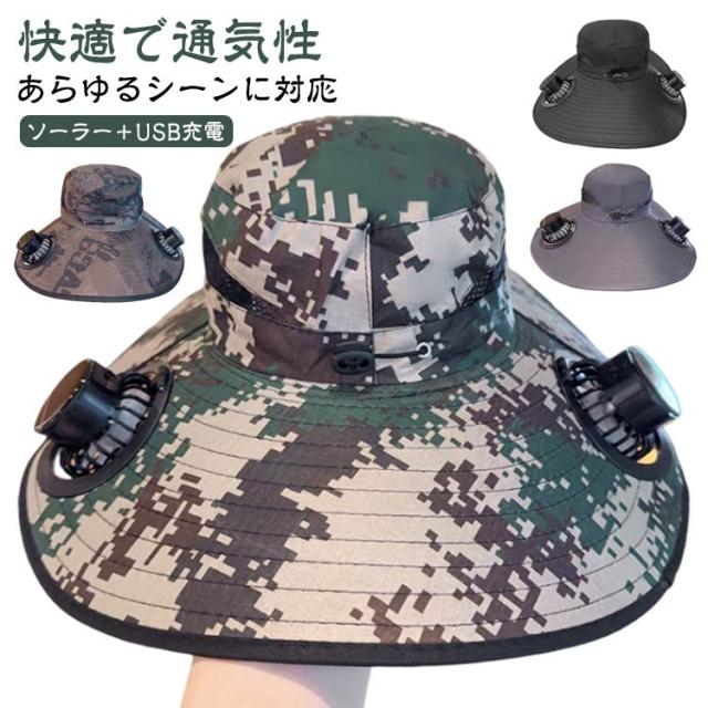 日よけ帽子 メンズ 扇風機付き帽子 つば広 あごひも 帽子 日焼け サファリハット 2ファン付き帽子 防風 旅行用 UV 登山 メンズ夏用帽子 通気 吸湿 速乾 ファン付きハット ソーラー 扇風機 ファン帽子 サファリハット 釣り トレッキング 自転車 釣り 熱中症対策