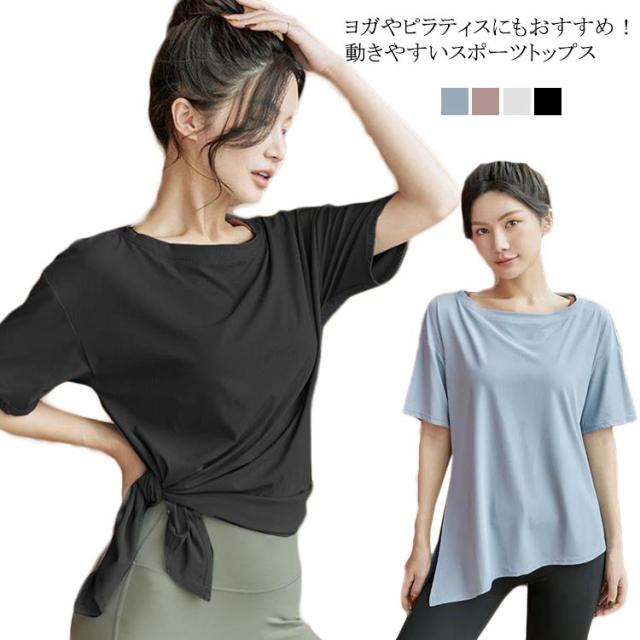 ヨガウェア Tシャツ 半袖 ヨガ レディース ホットヨガ スポーツ スポーツウエア トップス おしゃれ トレニンーグウエア スポーツウエア ショート丈 かわいい ジムウェア ジム ランニング 無地 シンプル 体型カバー フィットネス ストレッチ ギフト 送料無料