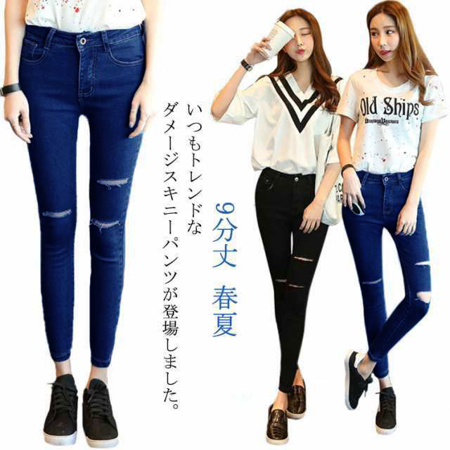 スキニーパンツ ダメージジーンズ スキニージーンズ デニム ダメージ ダメージデニム レディース スキニー パンツ スキニーデニム デニムパンツ スキニー 9分丈 春夏 小さいサイズ 大きサイズ 送料無料