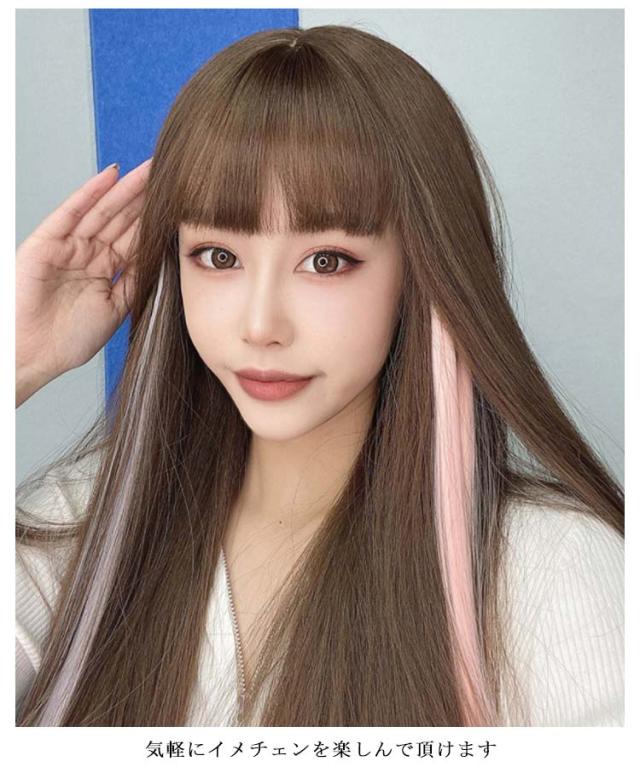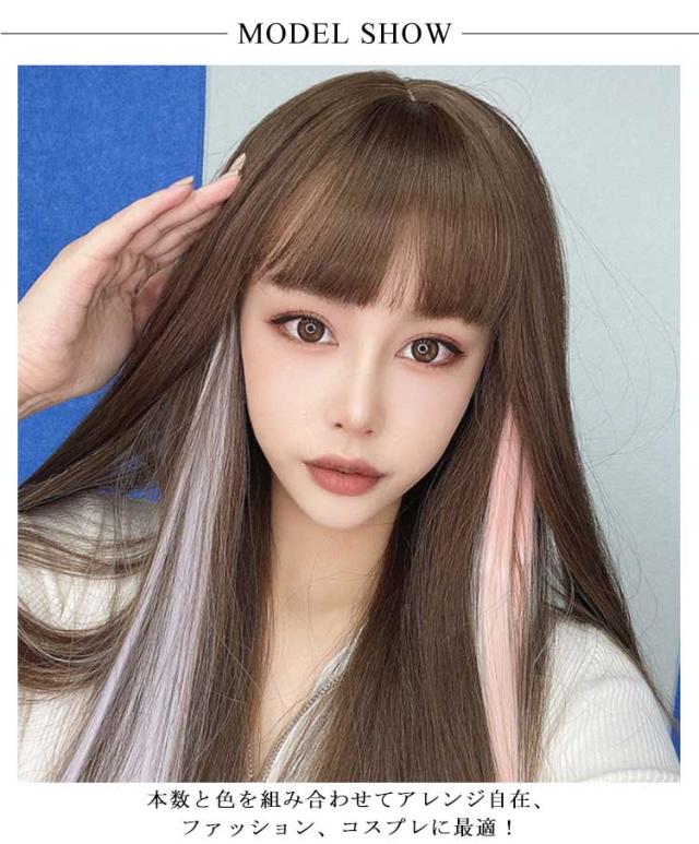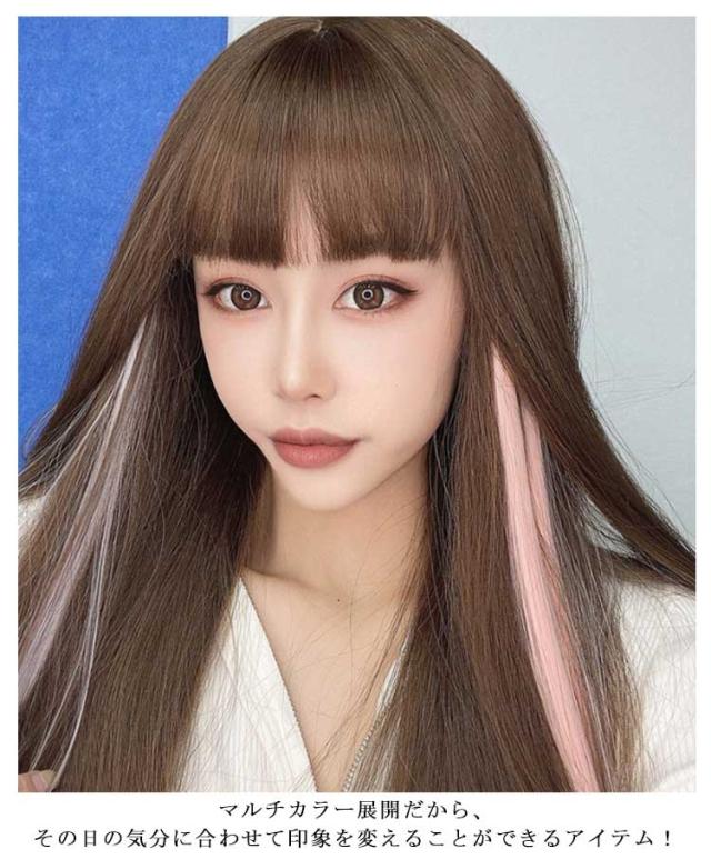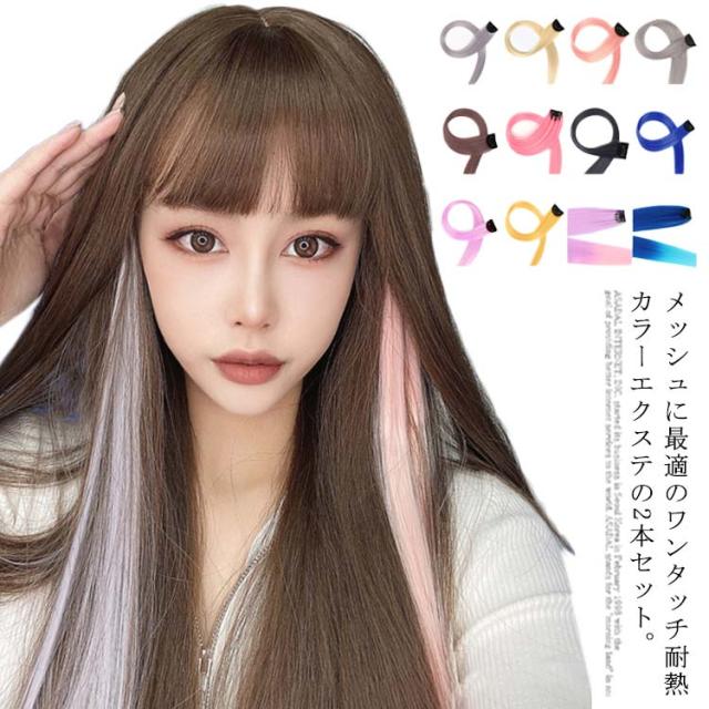 送料無料エクステ ワンタッチ カラー 2本セット ウィッグ エクステ メッシュ 自然 カラーエクステ 襟足 ポイントウィッグ ロングストレート 人毛 つけ毛 グラデーション 耐熱 簡単装着 イベント コスプレ ハロウィン 仮装 ダンス パーティー 結婚式 ヘアアクセサリー