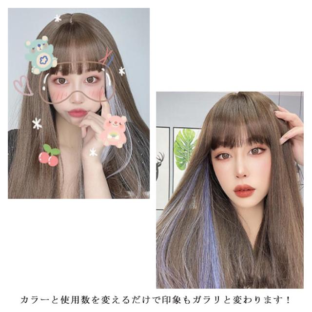 | メッシュに最適のワンタッチ耐熱カラーエクステの2本セット。 本数と色を組み合わせてアレンジ自在、ファッション、コスプレに最適! マルチカラー展開だから、その日の気分に合わせて印象を変えることができるアイテム! | |