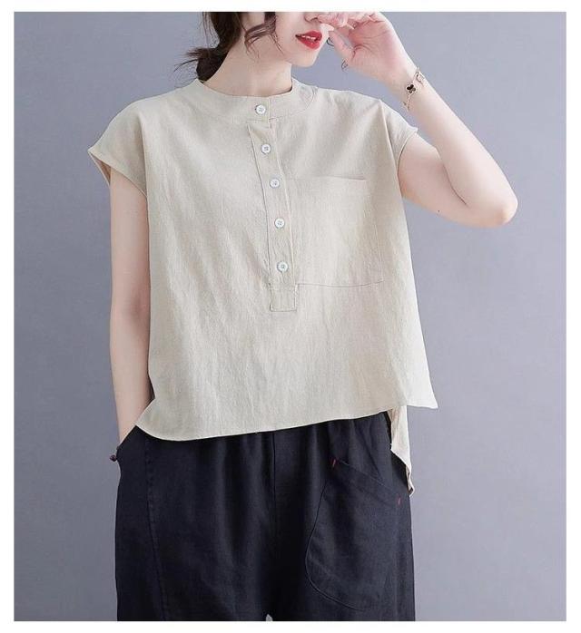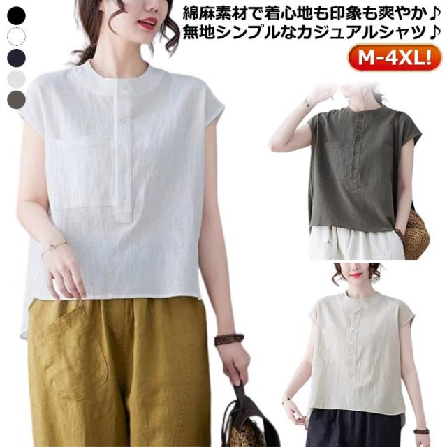 レディース 4XL リネンシャツ シャツ シャツブラウス 無地 スタンドカラーシャツ ブラウス 白シャツ 薄手 ゆったり サマー 春夏 夏 半袖 半袖ブラウス ワイシャツ 2XL カジュアル 大きいサイズ シンプル 体型カバー M L XL シャツ 3XL 綿麻風