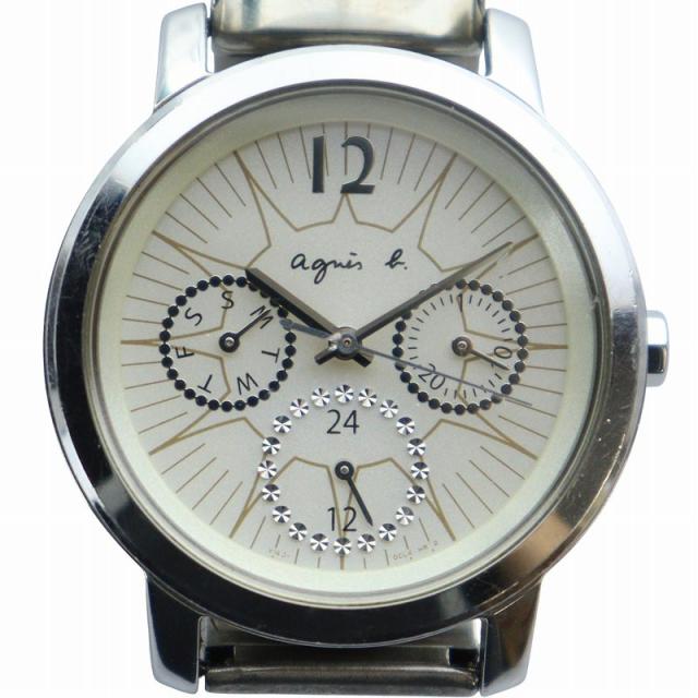 【中古】アニエスベー agnes b. 腕時計 バングルウォッチ クォーツ クロノグラフ 白文字盤 シルバー色 V14J-0BL0