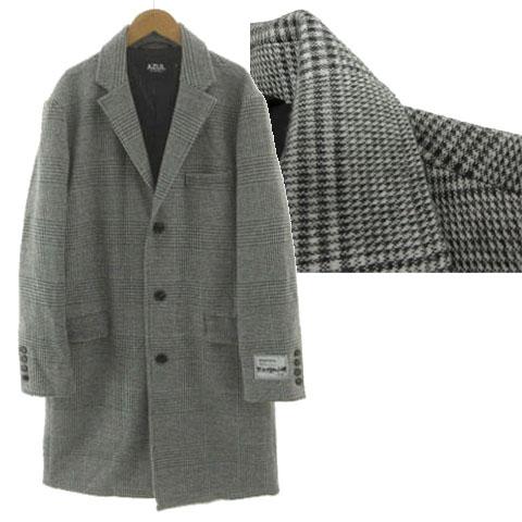 【中古】アズールバイマウジー ウォッシャブル チェスターコート 251EAB30-233I グレンチェック 起毛 グレー 白 S
