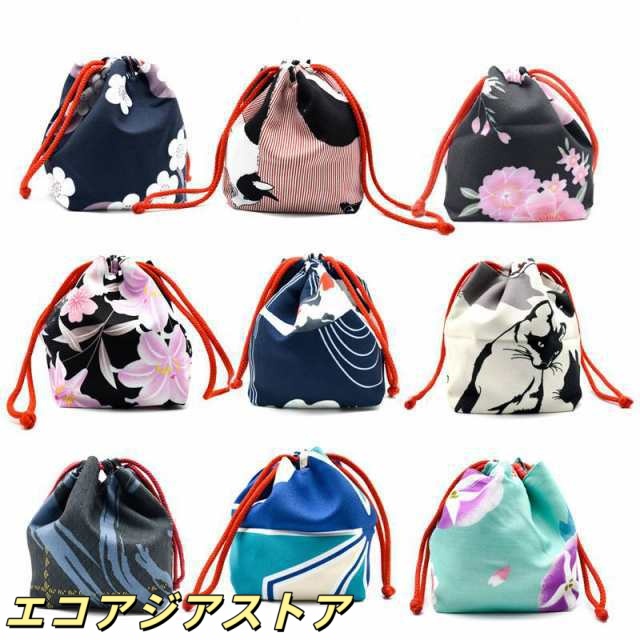 巾着袋 和風 花柄 ミニ巾着 14色 ラッピング袋 小銭入れ 小物収納 便利 多機能 レディース 浴衣アクセサリー 花火大会 祭り