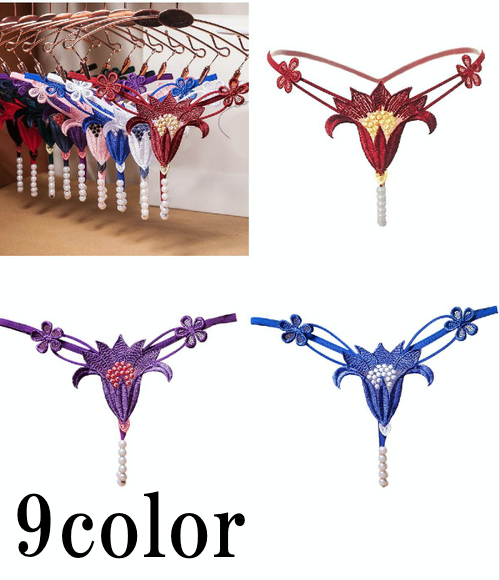 セクシー 花柄 パール 紐パン ★ レディース ランジェリー レース パンティ パンツ ショーツ ビキニ 下着 9色 M33-2