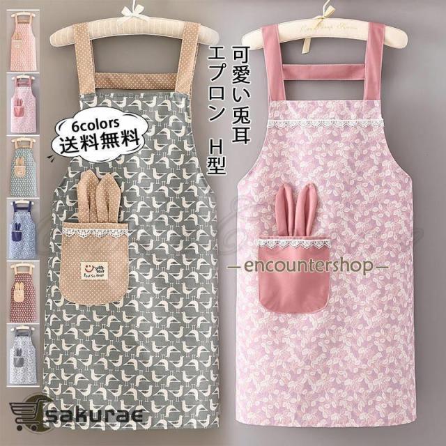 エプロン レディース H型 可愛い兎耳 保育士 業務用 家事 スタッフエプロン 料理教室 キッチン カフェ 美容院 サロン DIY 敬老の日 母の日 プレゼント