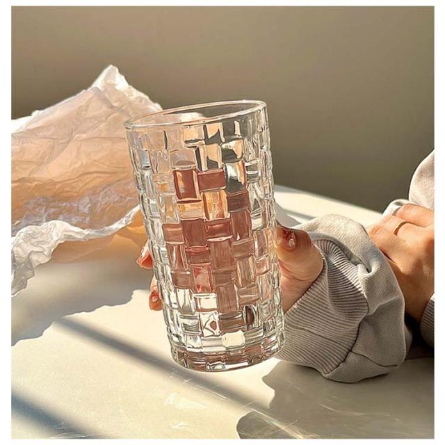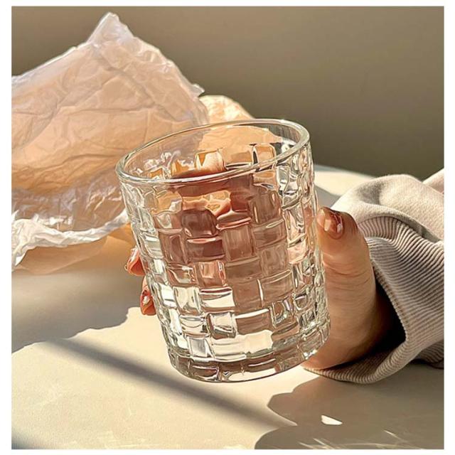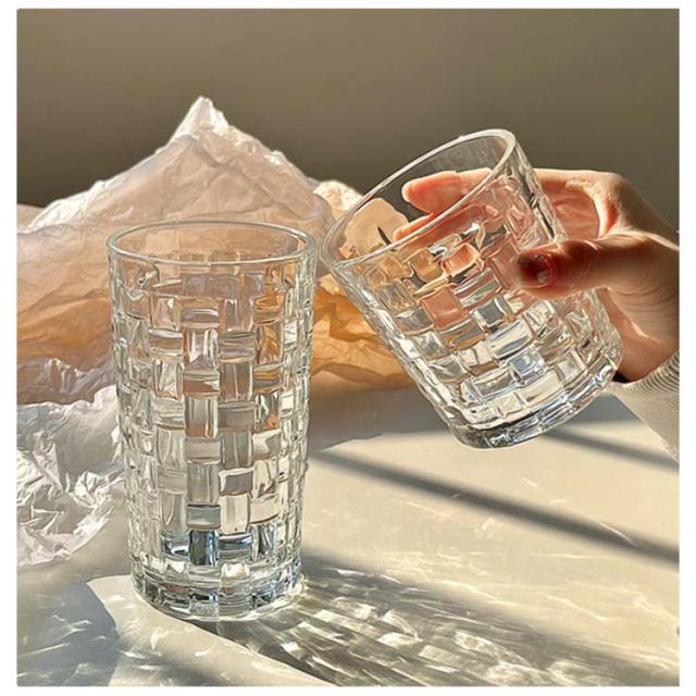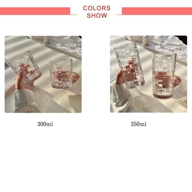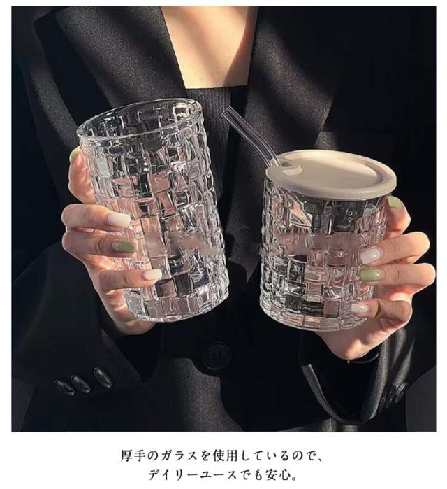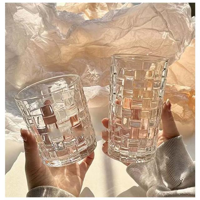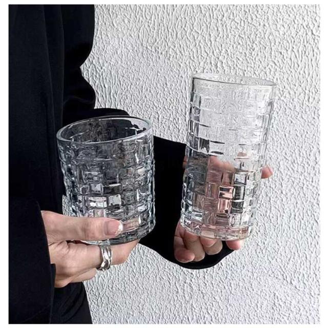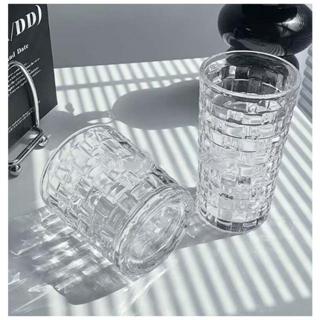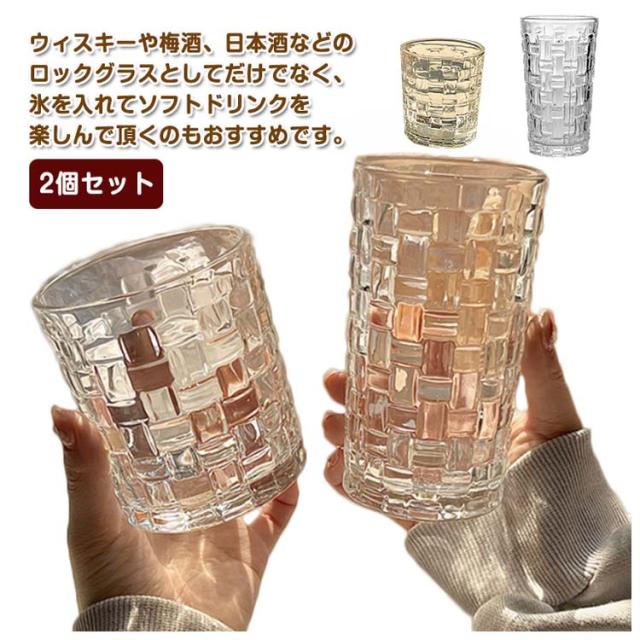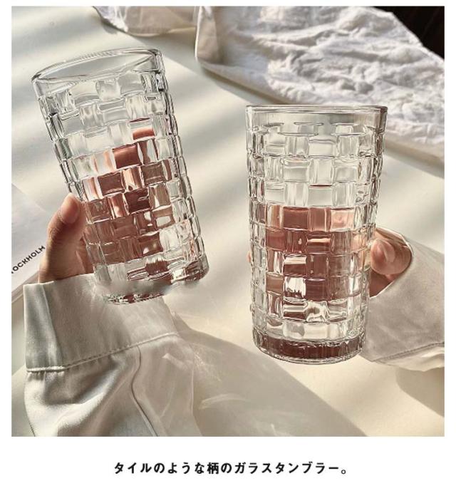 タンブラー ガラス 2個セット 麦茶 350ml ガラスカップ 酒器 クリア おしゃれ 300ml 冷茶 透明 ガラスコップ コーヒー 珈琲 カフェ風 コップ ミルク 北欧 高級感 グラス コップ 大きめ ロックグラス ガラス 食器 家庭用 ウィスキー タイル柄