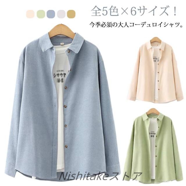 シャツ コーデュロイ レディース コーデュロイシャツ 無地 長袖シャツ ブラウス トップス アウター シャツブラウス カジュアルシャツ 大人 春 秋 冬 通勤 通学 OL 大きいサイズ カジュアル 可愛い 20代 30代 40代 S M L XL 2XL 3XL