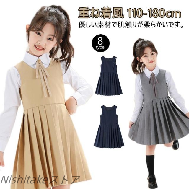女の子 長袖 ワンピース 重ね着風 キッズドレス 入学式 スーツ フォーマルドレス キッズ リボン付き 卒業式 フォーマル ワンピース ブラウス 子供服 子供スーツ 小学生 結婚式 ウェディング 七五三 お出かけ 通学 通園 カジュアル