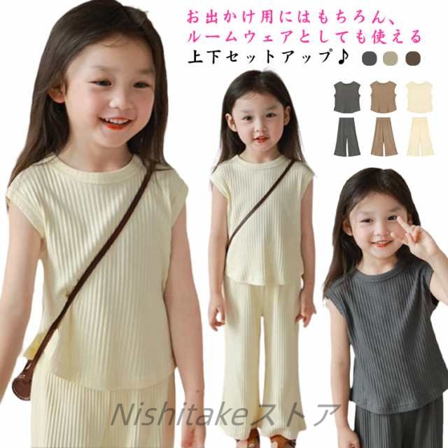 セットアップ ベビー服 ノースリーブ 夏 女の子 ロングパンツ トップス ガウチョパンツ tシャツ ボトムス ジュニア 赤ちゃん 女の子 長ズボン ベビー服 上下セット 入学 入園 誕生日 プレゼント 幼稚園