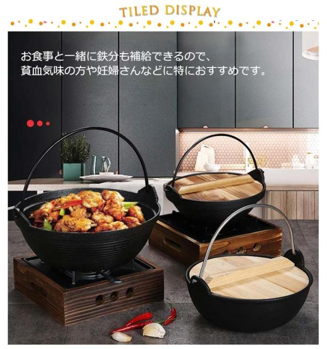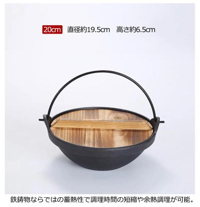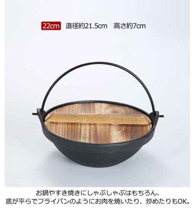 1人鍋 ガス火 炭火 鋳鉄 家庭用 卓上鍋 いろり鍋 天然木蓋付き すき焼き鍋 木製ふた付き 鉄鍋 囲炉裏鍋 ツル付き キャンプ 鍋 旅館 飲食店 業務用 懐石料理 直火 割烹 煮物 焼き物 フライパン 持ち手付き 料亭