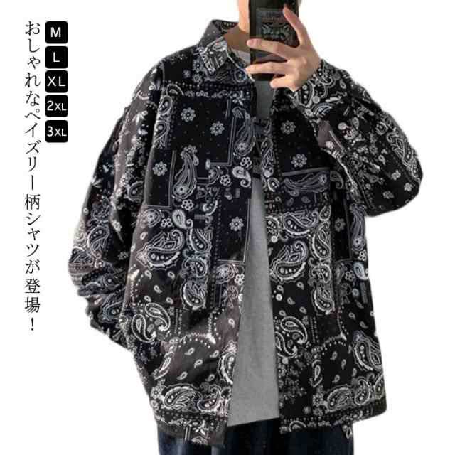 ペイズリー柄 シャツ メンズ カジュアルシャツ 長袖シャツ 羽織り レトロ 大きいサイズ 柄シャツ 開襟シャツ 体型カバー 韓国ファション ゆったり かっこいい M L XL 2XL 3XL
