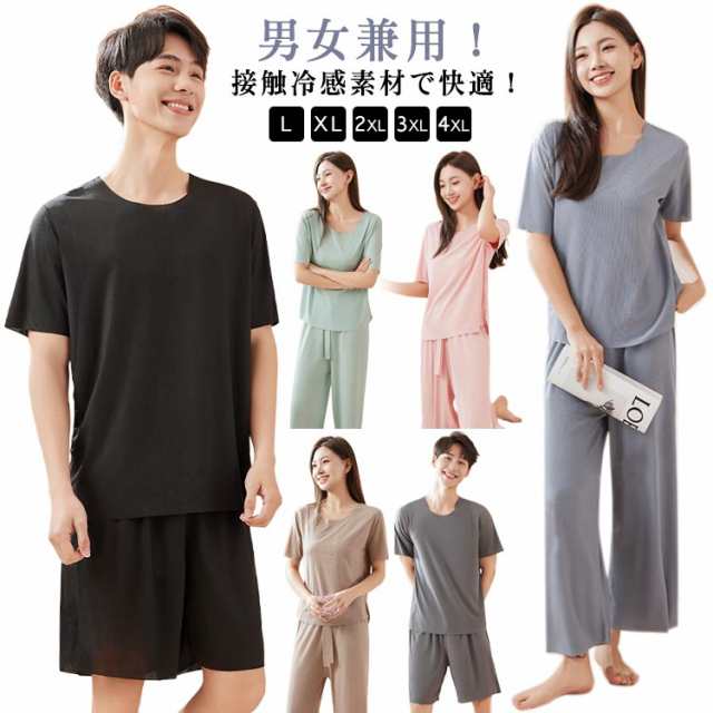 ルームウェア 接触冷感 レディース ナイトウェア 接触冷感 ハーフパンツ/ロングパンツ 夏 半袖 パジャマ 上下セット Tシャツ 上下セット 2点セット 薄手 メンズ 大きいサイズ ウエストゴム 涼しい 涼感 部屋着 寝巻き リラックスウェア 送料無料