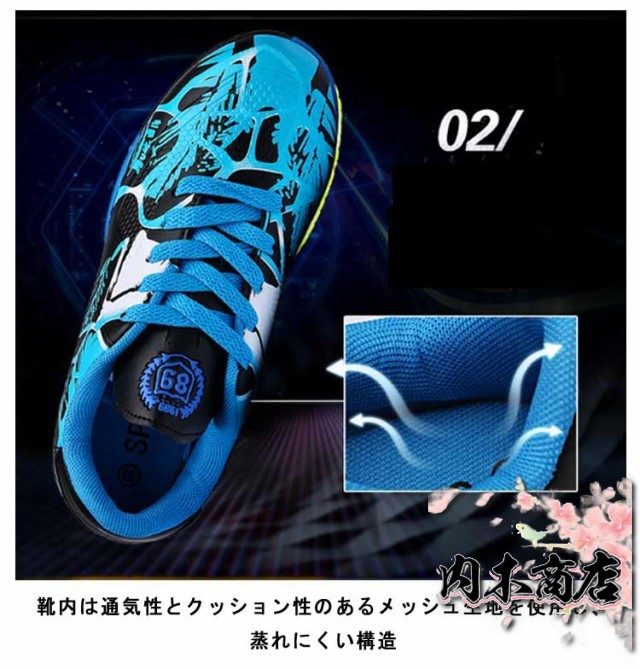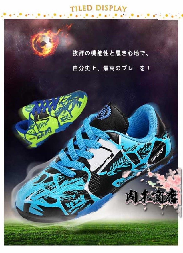 | サッカーシューズ 22-27.5cm スパイクなし 抜群の機能性と履き心地で、自分史上、最高のプレーを! 靴内は通気性とクッション性のあるメッシュ生地を使用し、蒸れにくい構造 驚くほど軽い設計! | |