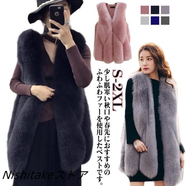 フェイクファー ファーコート 大きいサイズ 羽織り ファーベスト コート もこもこ ベスト アウター ロング 暖かい ふわふわ エコ ファー ファーコート 前開き ベスト トップス レディース 秋 冬 ジレ 体型カバー グレー ブラック